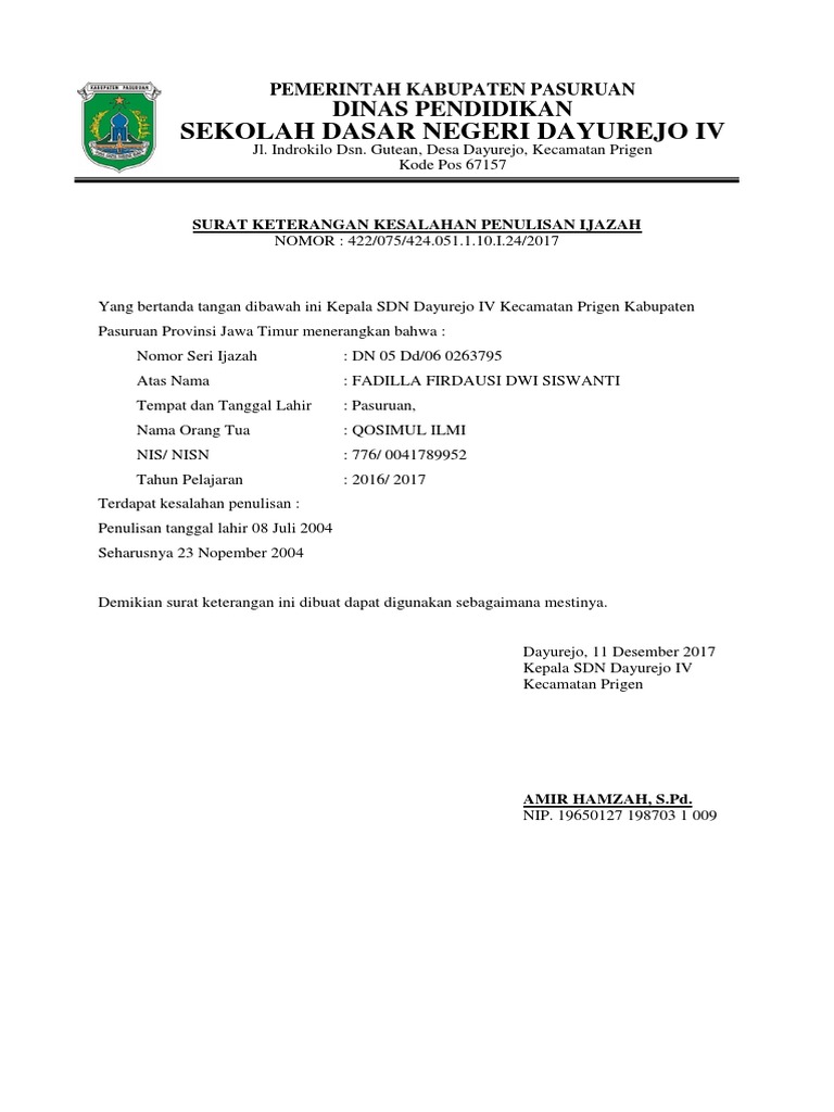 Admin mengumpulkan informasi Contoh Surat Keterangan Salah Penulisan Ijazah.