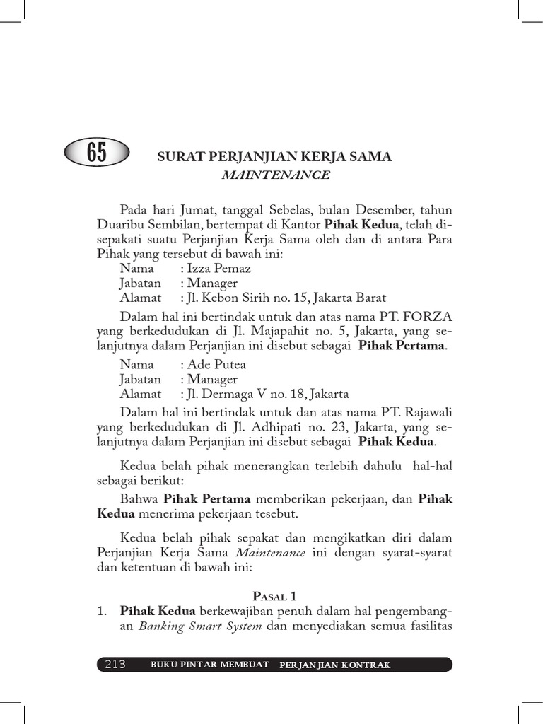 Surat Perjanjian Kontrak Kerjasama Proyek Suratmenyuratnet