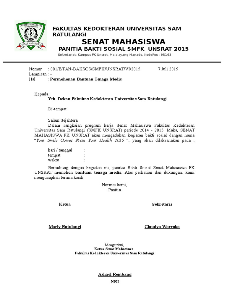 Surat Bantuan Tenaga Medis 2015 Baksos Senat Fk