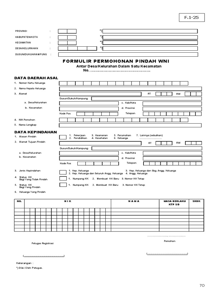 Formulir Permohonan Pindah Wni Antar Kec F 125pdf