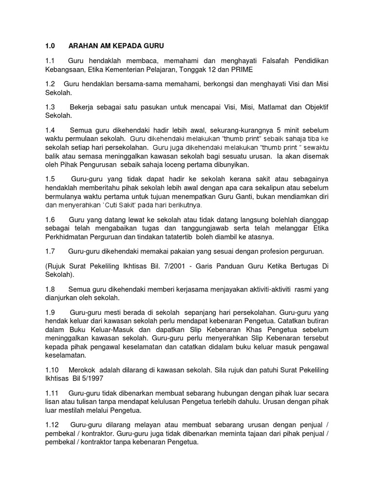 Peraturan Sekolah Guru Guru