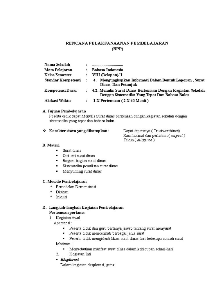Kd 42 Menulis Surat Dinas Berkenaan Dengan Kegiatan Sekolah Dengan