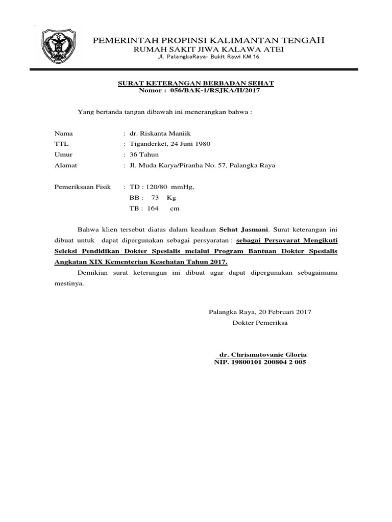 Contoh Surat Keterangan Sehat Jasmani Dan Sehat Rohani Pak Pandani