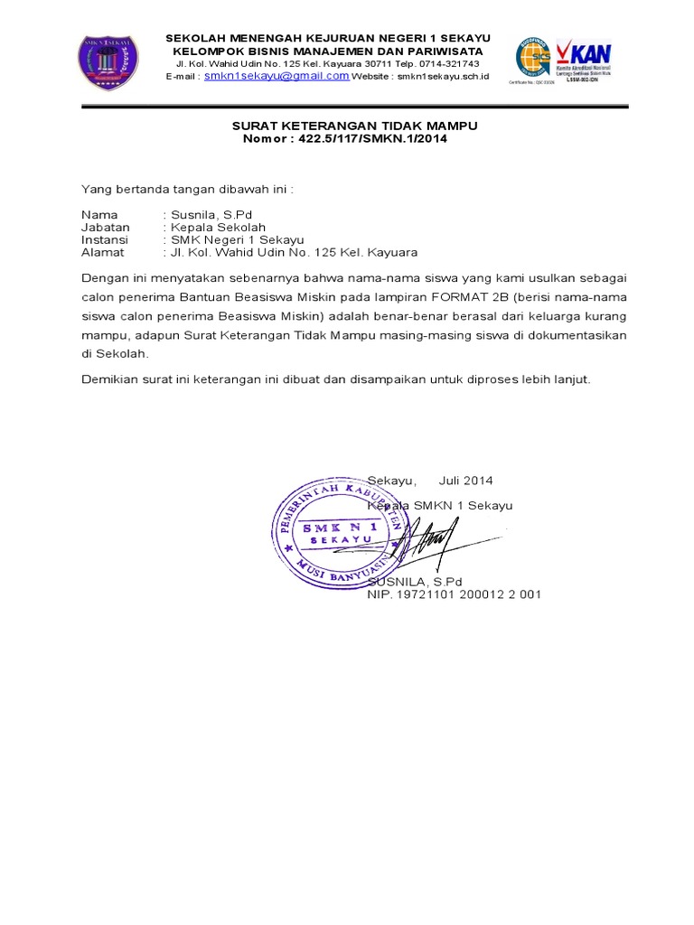 Surat Keterangan Tidak Mampu Nomor 4225117smkn12014