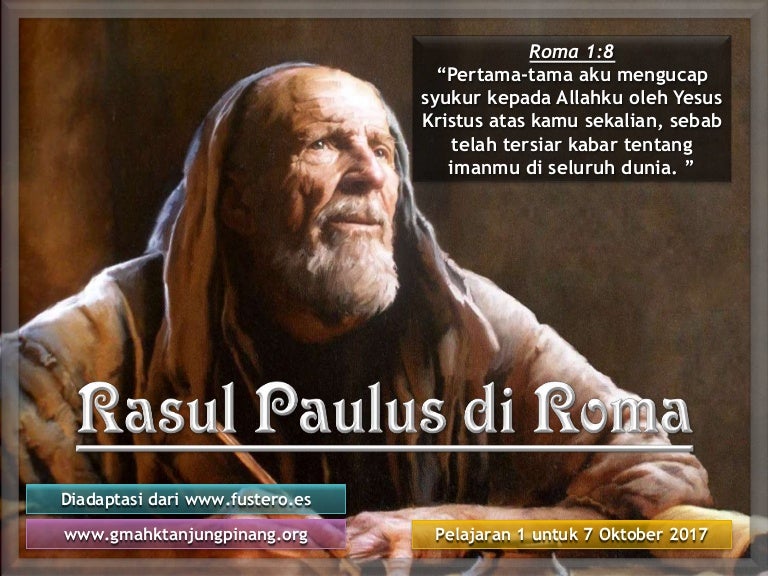 Dari paulus hamba kristus yesus yang dipanggil menjadi rasul dan dikuduskan untuk memberitakan injil allah. Surat paulus kepada jemaat di roma adalah salah satu surat yang terdapat di alkitab perjanjian baru yang sangat diyakini sebagai tulisan asli paulus. Surat paulus kepada jemaat roma paul to the church at rome oleh dr.
