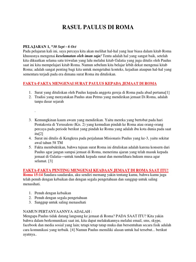 Surat paulus kepada jemaat di roma. Anda dapat memahami alkitab. Khotbah ini dikhotbahkan di first baptist church in dalas. Surat kepada orang orang roma adalah yang terpanjang di antara surat surat paulus dan dianggap oleh banyak orang sebagai surat terhebatnya.