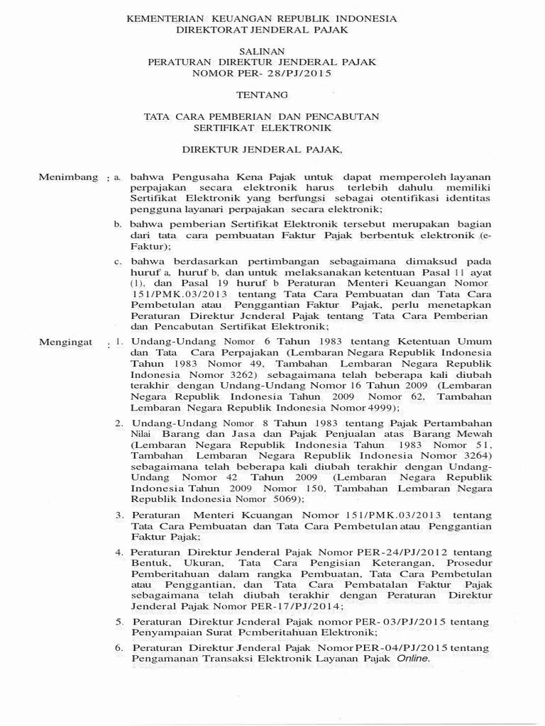 Per 28 Pj 2015 Tata Cara Pemberian Dan Pencabutan Serifikat Elektronik