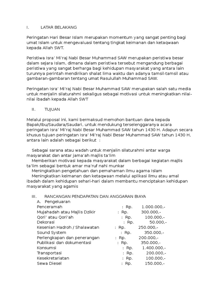 Contoh Proposal Penyelenggaraan Isra Miraj