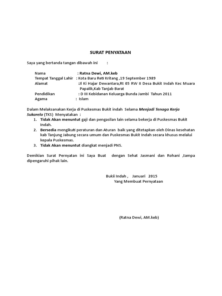 Contoh Surat Pernyataan Tidak Menuntut Menjadi Pns Archives Gawe Cv