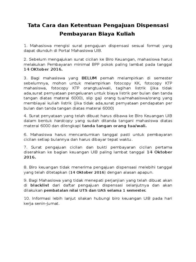 Tata Cara Dan Ketentuan Pengajuan Dispensasi Pembayaran Biaya