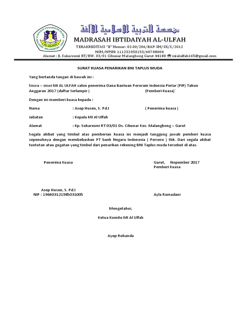 Download Gratis Contoh Surat Kuasa Untuk Pencairan Pip Library