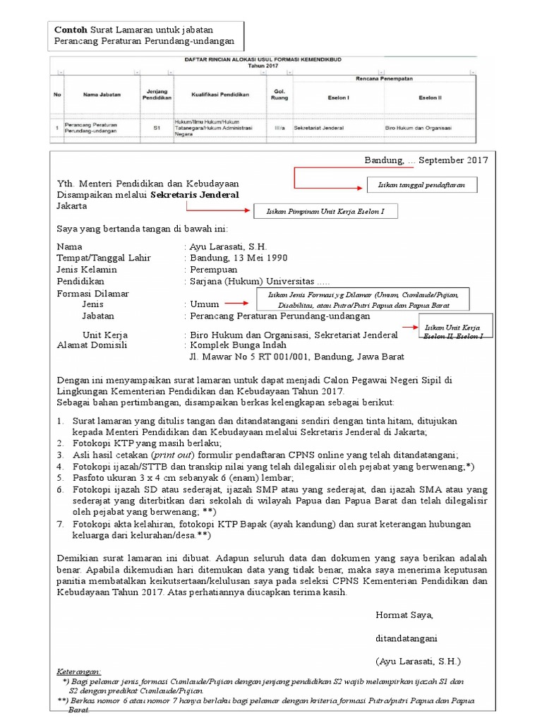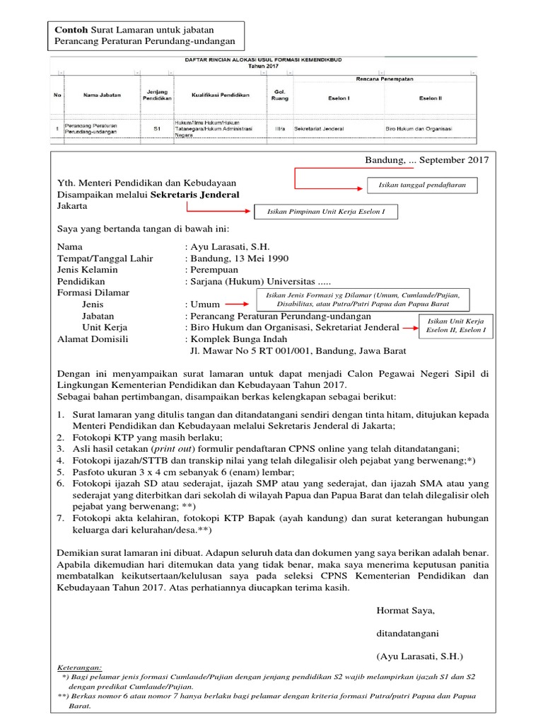 Download Contoh Surat Lamaran Seleksi Cpns Kemendikbud 2018 Pdf Word