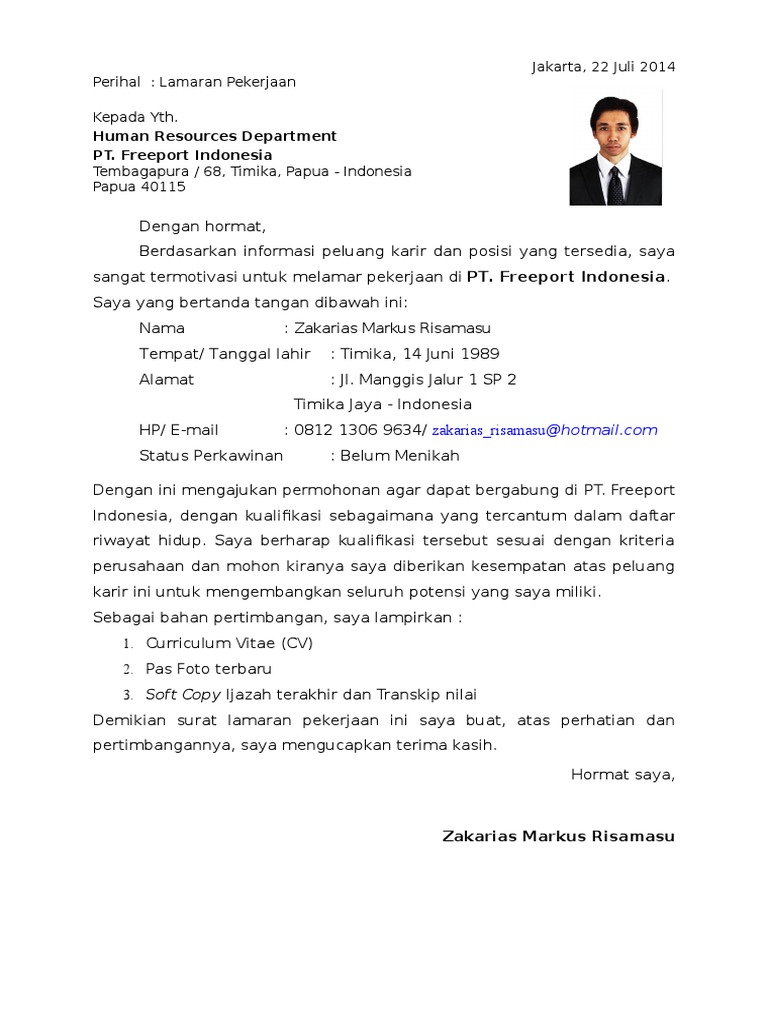 Berikut gambar-gambar mengenai Contoh Surat Lamaran Kerja Ke Pt Freeport.
