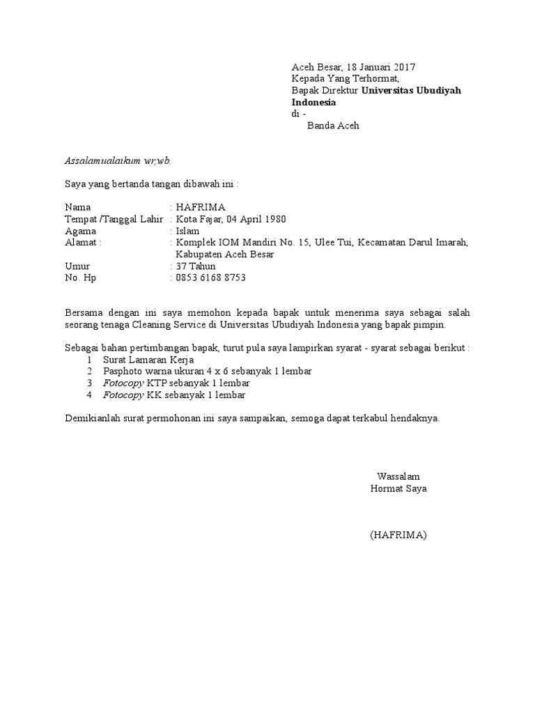 Contoh Surat Lamaran Kerja Cleaning Service Yang Baik Dan Benar Id