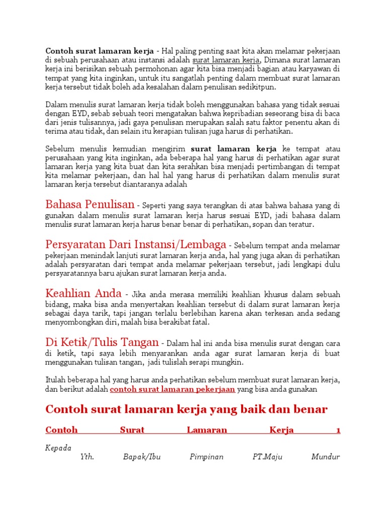 Contoh Surat Lamaran Kerja Terbaru Docpdf