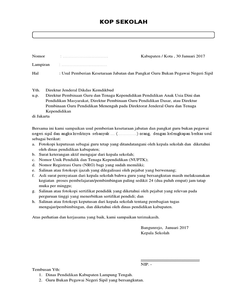 Surat Pengantar Dari Kepala Sekolah Untuk Inpassing Informasi Guru