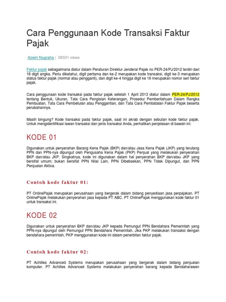 Cara Penggunaan Kode Transaksi Faktur Pajakdocx