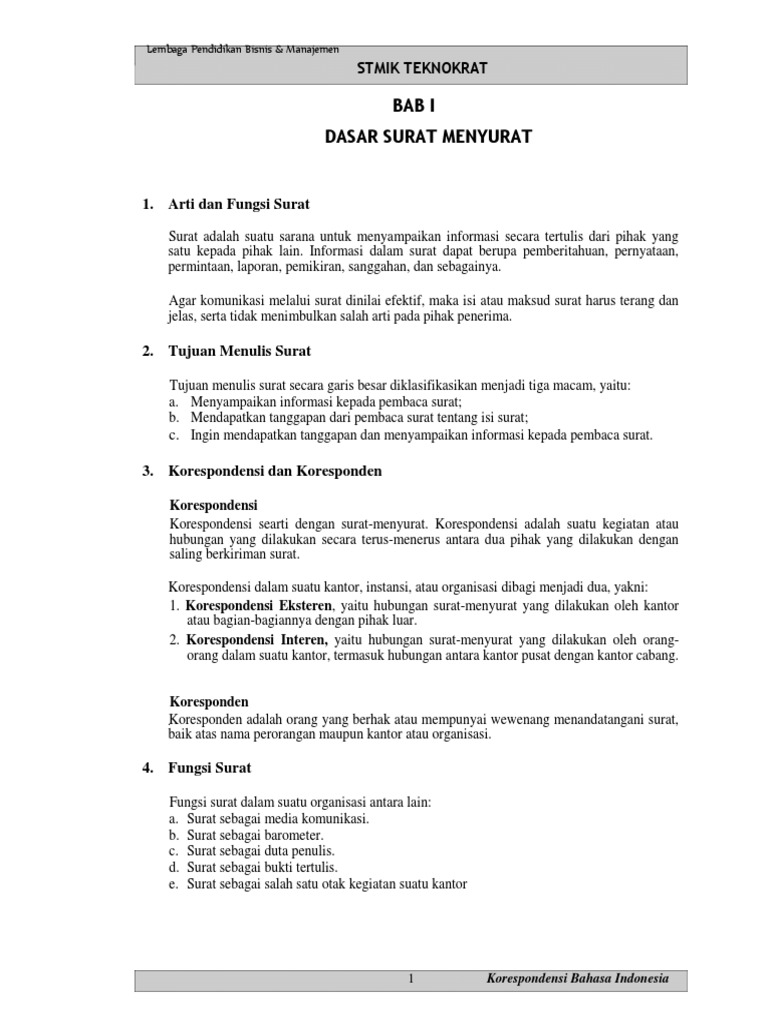 Bab I Dasar Surat Menyurat Stmik Teknokrat