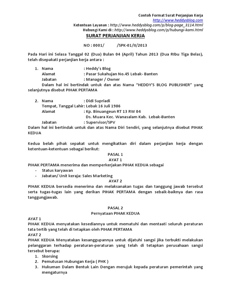 7 Contoh Surat Perjanjian Kontrak Kerja Yang Baik Dan Benar