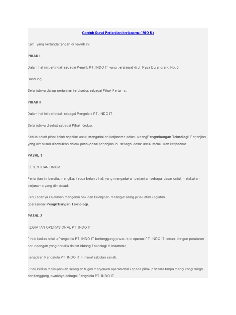 Contoh Surat Perjanjian Kerjasama Bagi Hasil Contoh Surat