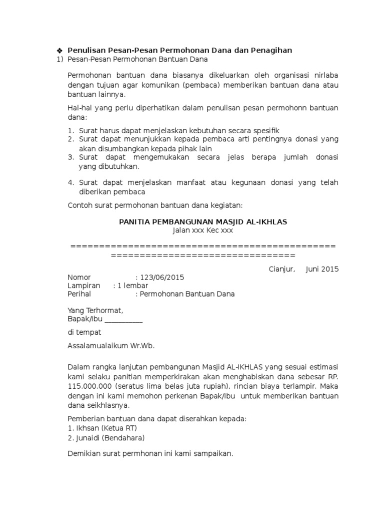 Contoh Surat Permohonan Bantuan Dana Pembangunan