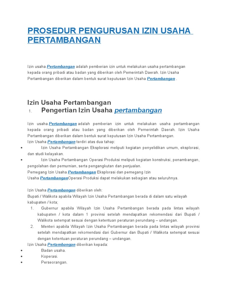 Prosedur Pengurusan Izin Usaha Pertambangan