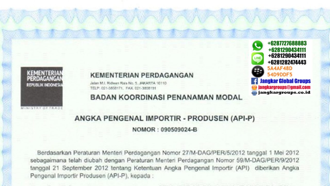 Urus Api Umum Produsen Propinsi Bkpm 081330219788 Nik Bea Cukai