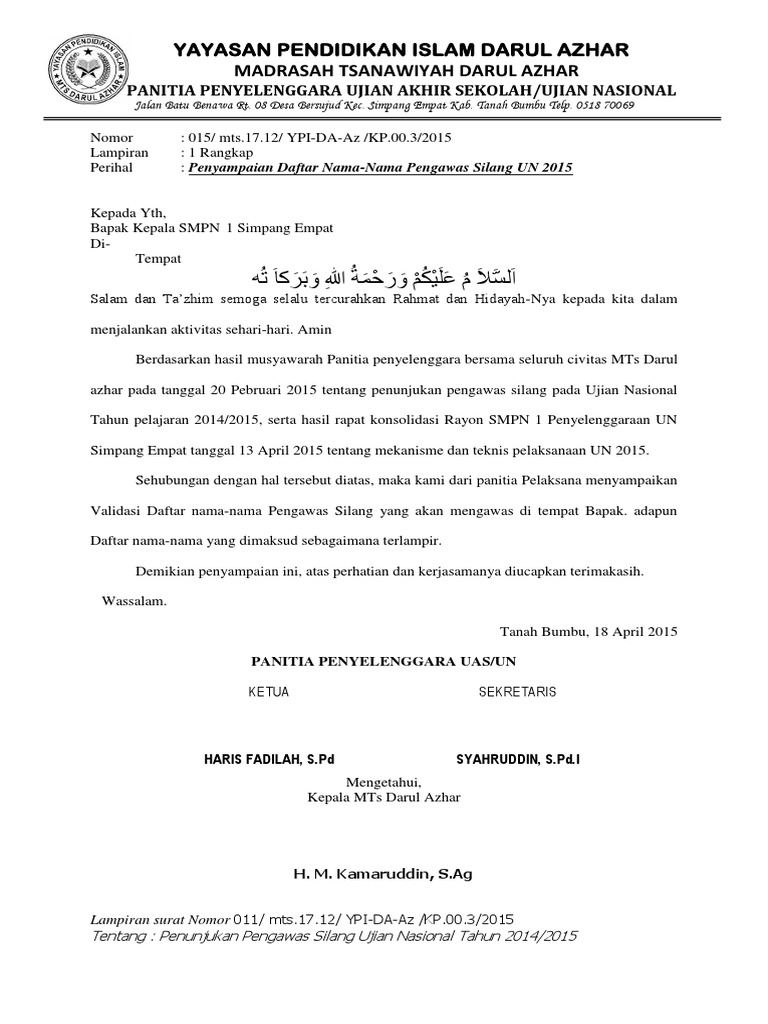 Surat Tugas Pengawas Ujian Suratmenyuratnet
