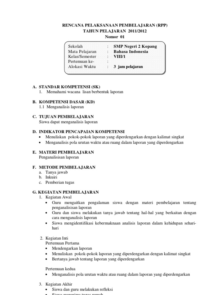 Rpp Bahasa Indonesia Kelas 8lili Sundari
