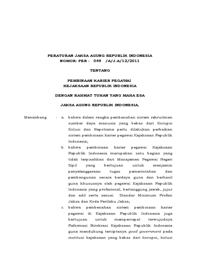 Perja 049 2011 Pembinaan Karier Pegawai Kejaksaan Ri Final