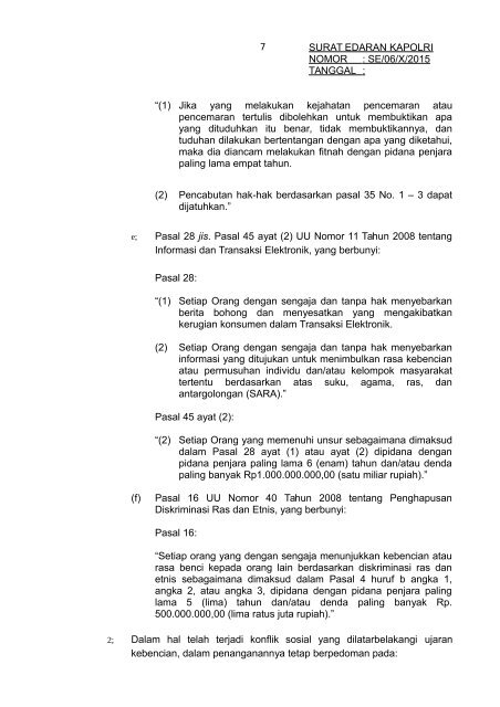 Surat edaran kapolri tentang ujaran kebencian hate speech nomor 6 tahun 2015. Surat edaran kepala kepolisian negara nomor se6x2015 tahun 2015 tentang penanganan ujaran kebencian hate speech untuk mendapatkan surat edaran kepala kepolisian negara nomor se6x2015 tahun 2015 silahkan lakukan. Se6x2015tentang ujaran kebencian surat edaran kapolri nomor.