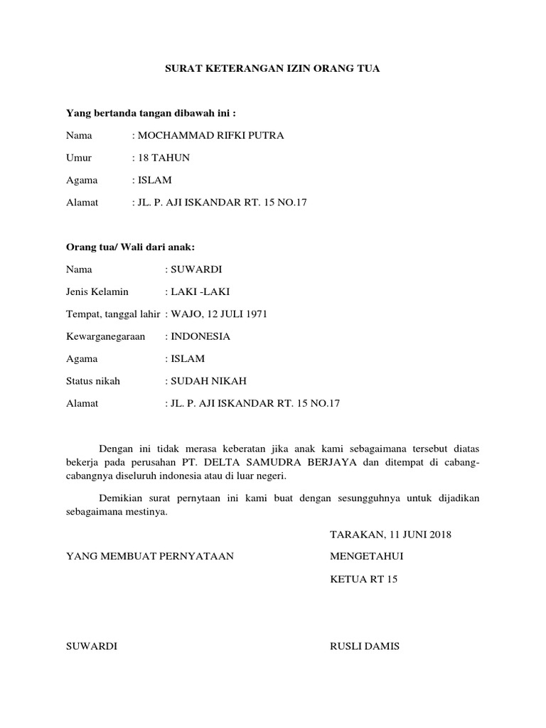 13 Contoh Surat Pernyataan Izin Orang Tua Untuk Berbagai Keperluan
