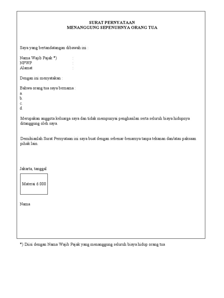 Contoh Surat Pernyataan Menanggung Orang Tua