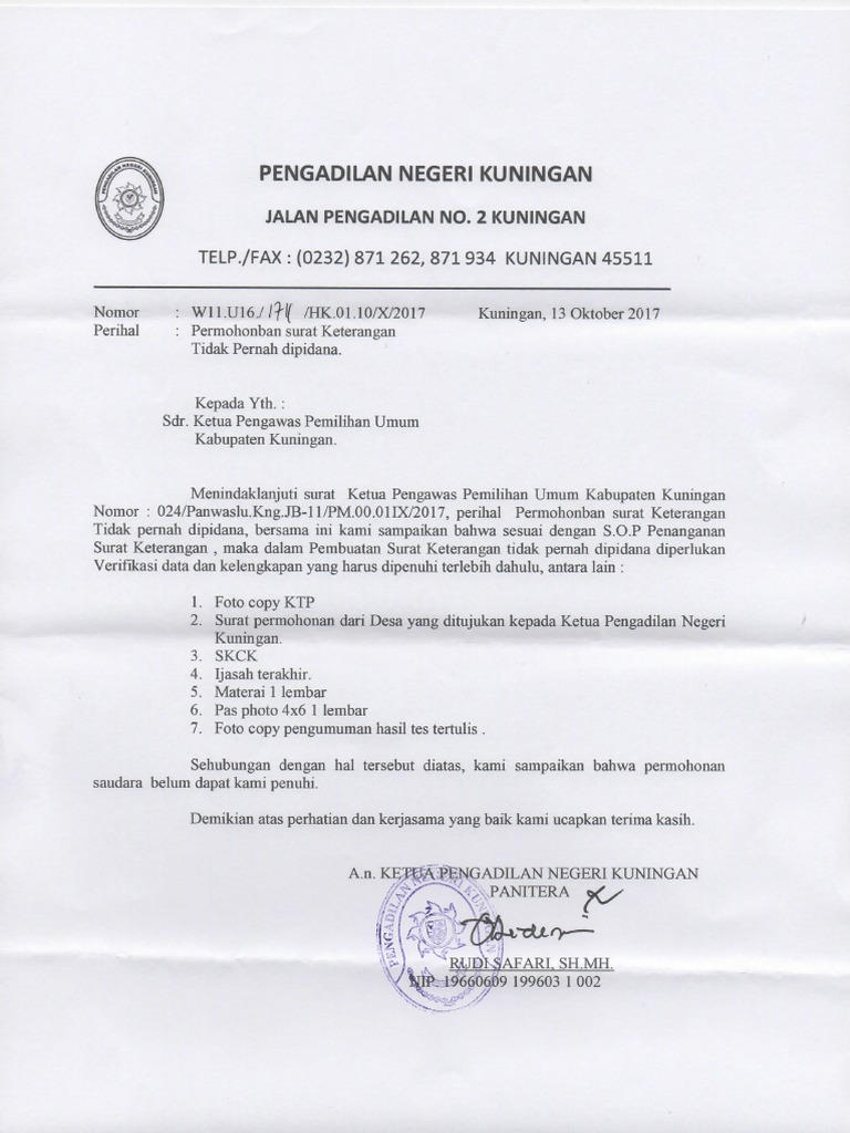 Surat Keterangan Tidak Pernah Sebagai Terpidana Berdasarkan Putusan