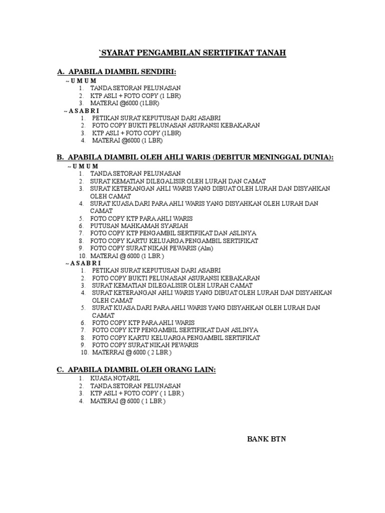 Dibawah ini adalah informasi Surat Kuasa Pengambilan Sertifikat Rumah Di Bank.