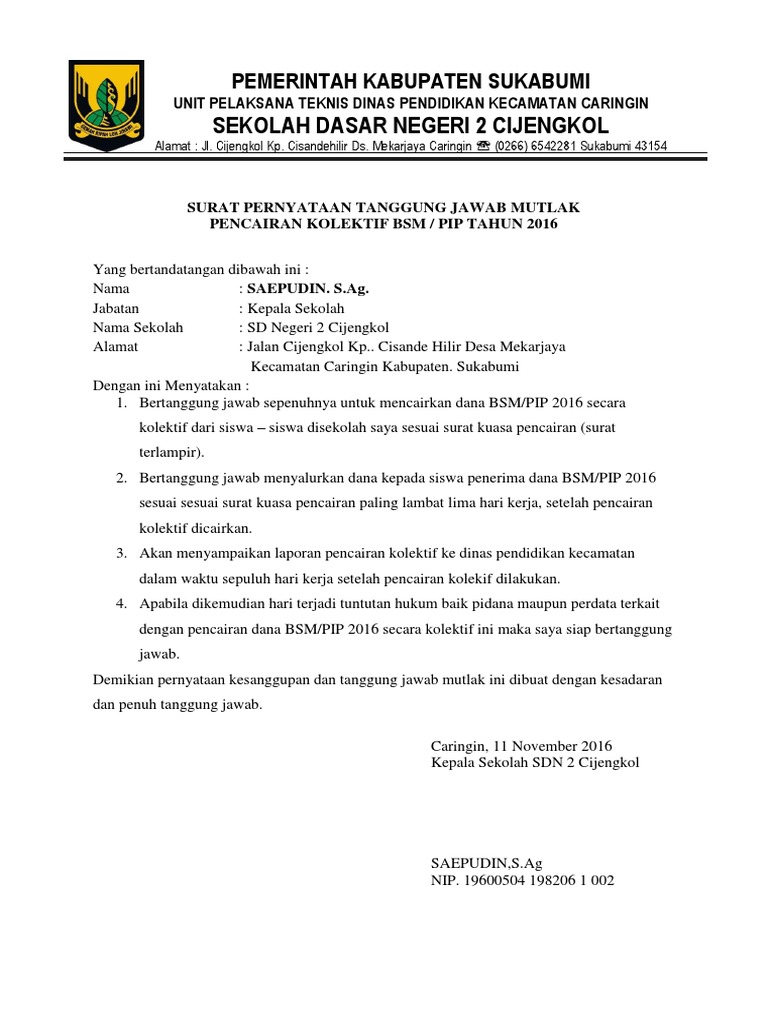 Contoh Surat Pertanggung Jawaban Mutlak Sptjm Bsmpip Ngintip