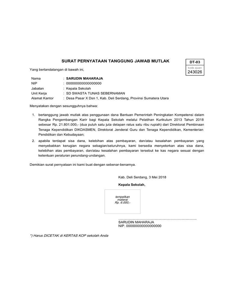Temukan informasi lengkap tentang Surat Pernyataan Tanggungjawab Mutlak Kepala Sekolah.