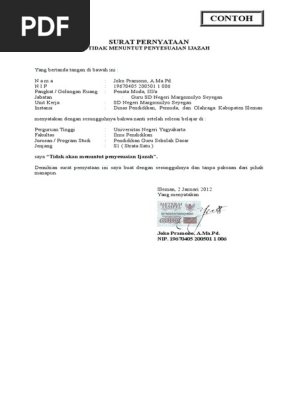 Contoh Surat Pernyataan Tidak Menuntut Penyesuaian Ijazahdoc