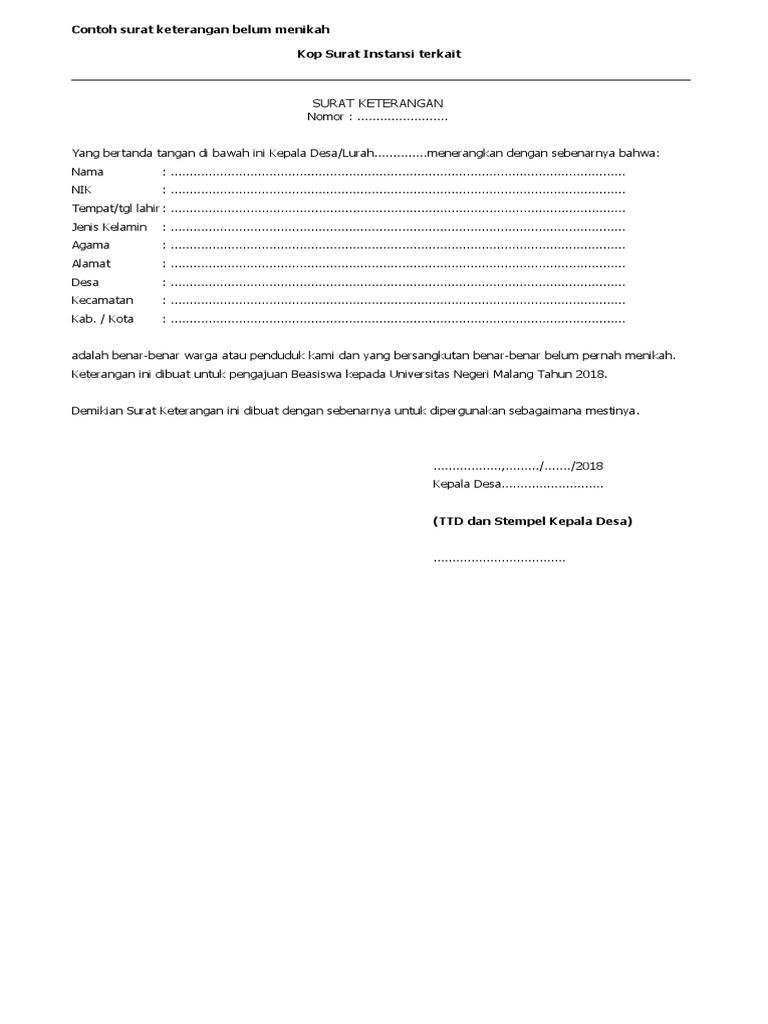 Admin mengumpulkan dari berbagi sumber terkait Contoh Surat Keterangan Belum Menikah Dari Kepala Desa.