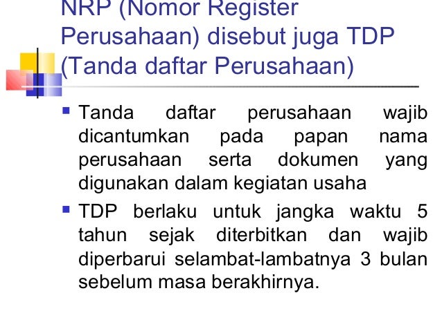Informasi mengenai Contoh Surat Nomor Register Perusahaan Nrp.
