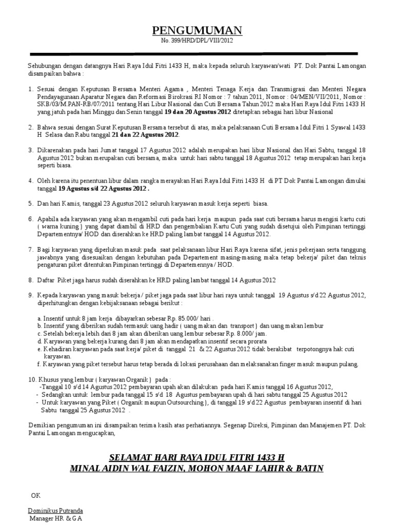Admin mengumpulkan informasi Contoh Surat Pemberitahuan Libur Hari Raya Idul Fitri Perusahaan.