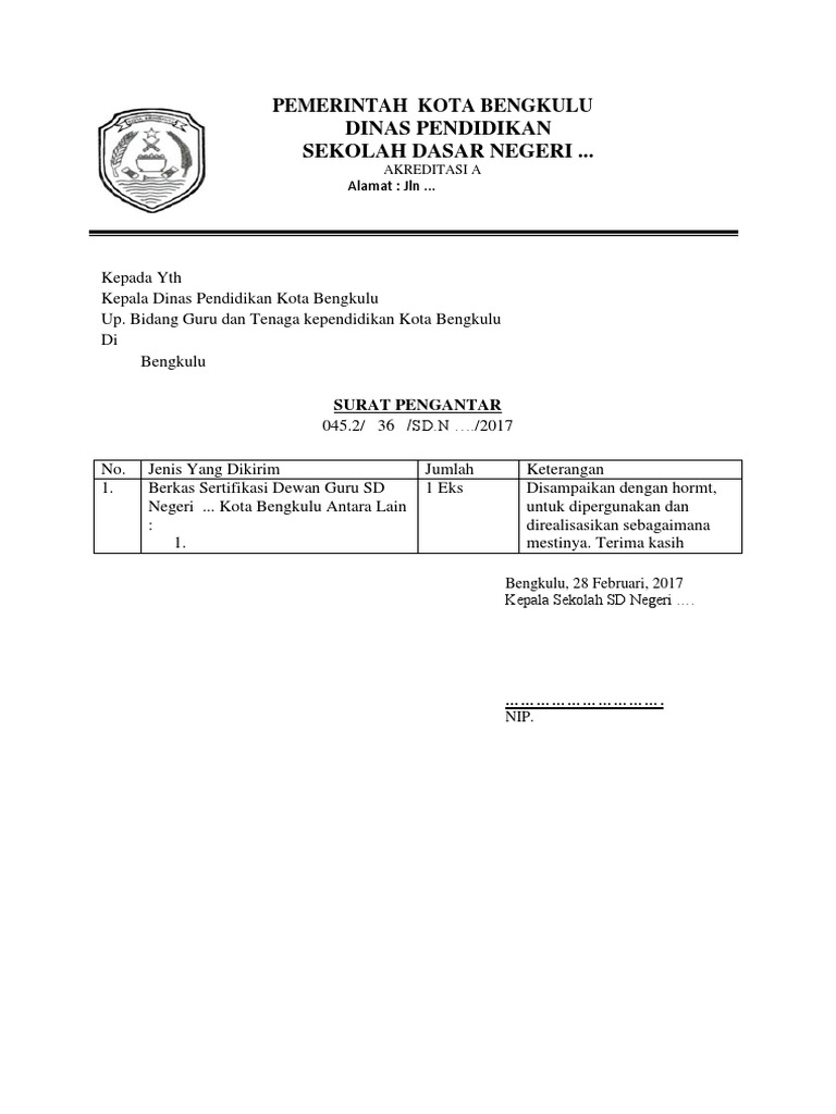 Contoh Surat Pengantar Untuk Pengajuan Nuptk