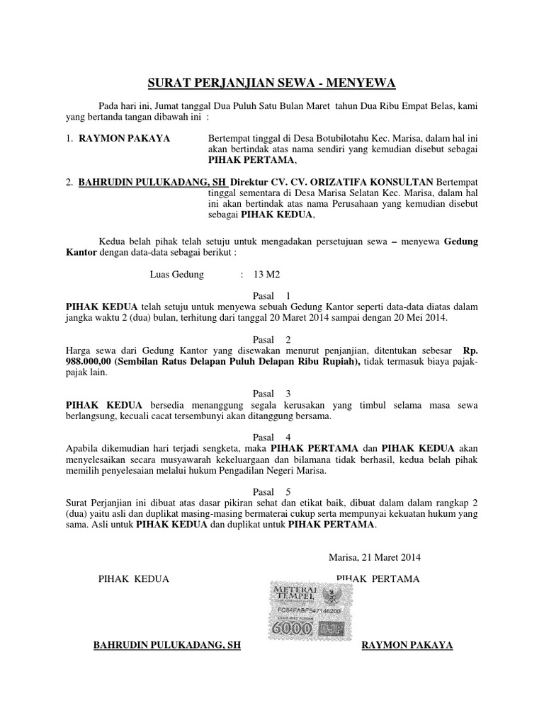 Contoh Surat Perjanjian Sewa Ruko Kios Pdfdoc Lamudi