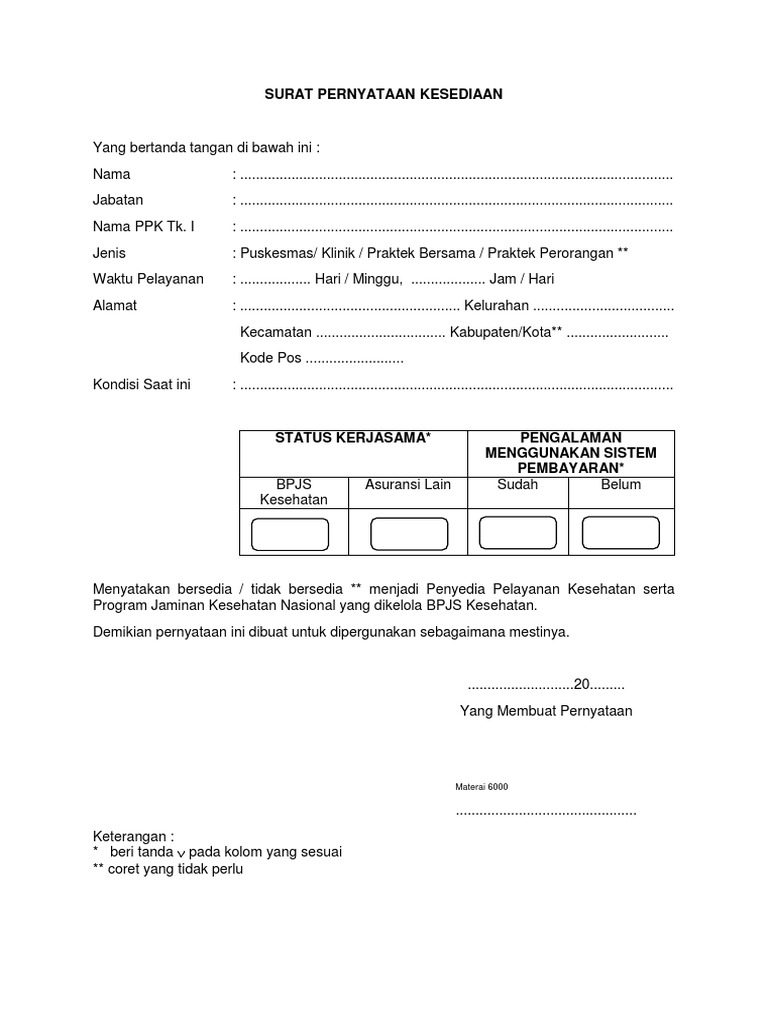 Itulah contoh surat pernyataan tidak ikut serta bpjs kesehatan yang dapat admin kumpulkan. Admin blog Kumpulan Surat Penting juga mengumpulkan gambar-gambar lainnya terkait contoh surat pernyataan tidak ikut serta bpjs kesehatan dibawah ini.
