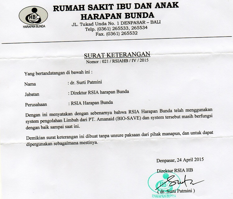 Testimonial Pt Amanaid Bali Waste Water Specialist