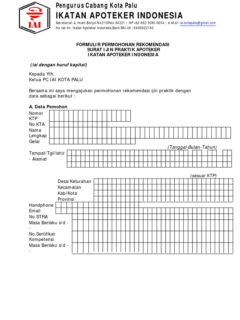 Formulir Permohonan Rekomendasi Surat Izin Praktik Apoteker Ikatan Apoteker Indonesia