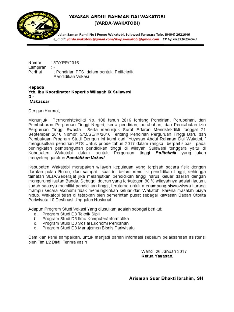 Ketua yayasan perkumpulanbadan penyelenggaraan pendidikan berbadan hukum di seluruh indonesia. Edaran menristekdikti tentang pendirian pt dan pembukaan prodi. Surat permohonan rekomendasi pendirian perubahan pts dan pembukaan prodi pt.