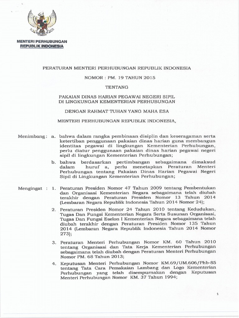 Pm 19 Tahun 2015 Ttg Pdh Pns Kementerian Perhubungan Terbaru