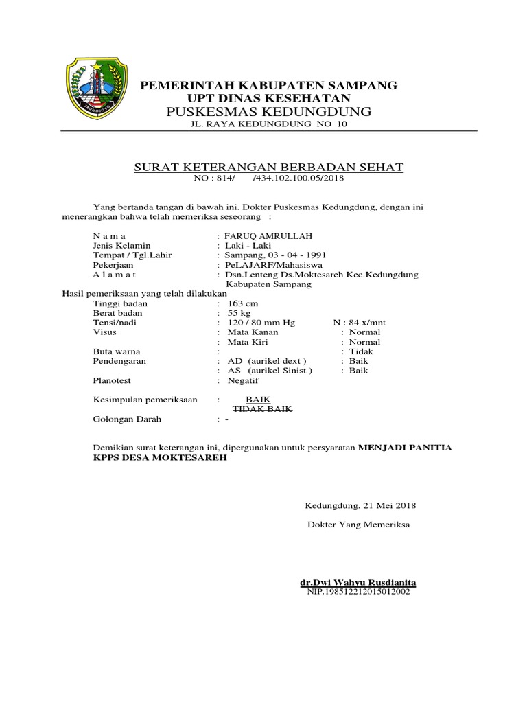 Koleksi admin mengenai Surat Keterangan Berbadan Sehat Dari Dokter Pemerintah.
