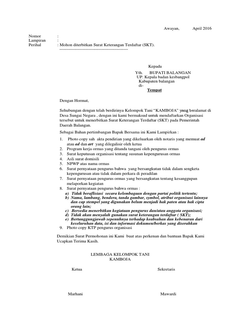 Surat Pernyataan Tidak Dalam Sengketa Kepengurusan Atau Tidak Dalam